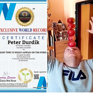 In Slovakia I was also with my brother in 2017 Top record holder. I own 541 records and 49 World Brands. In the USA, I got to the 5th place among the best record holders. My records include, for example, the record with a table tennis racket. I placed a ping pong ball on her handle. I then leaned the racket on the table and held it for 1 hour 10 minutes, 46 seconds.