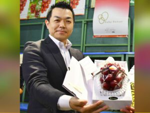 शाही फ्रूट यानि रूबी रोमन के नाम से है मशहूर यह जापानी लाल अंगूर - लाल अंगूर के एक गुच्छे...