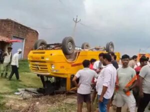 अनियंत्रित होकर स्कूल बस पलटी,आधा दर्जन बच्चे घायल