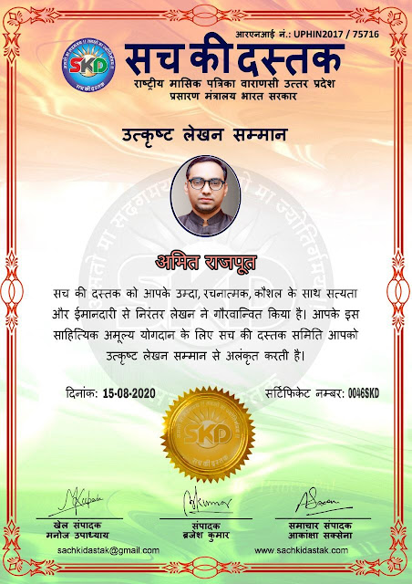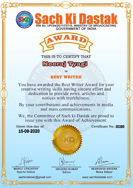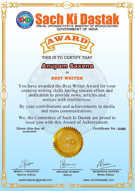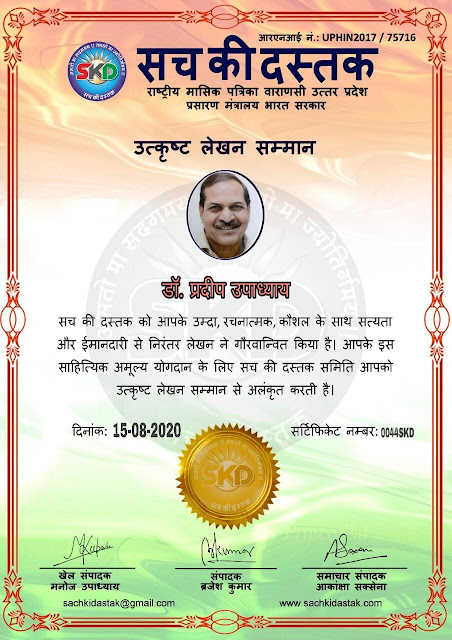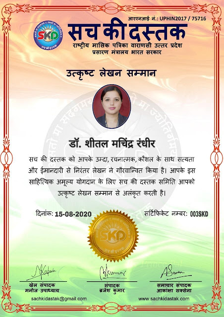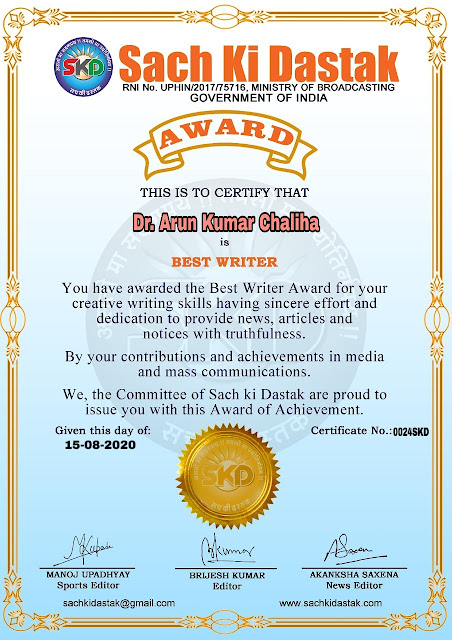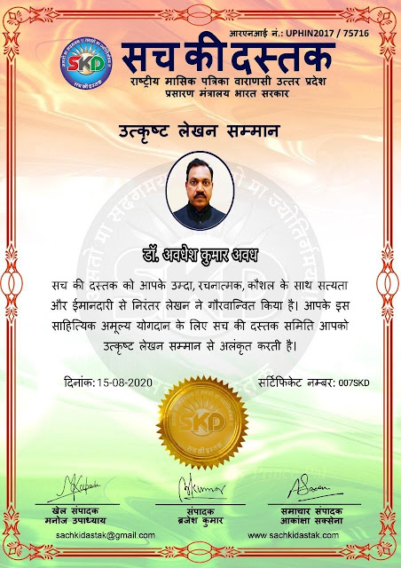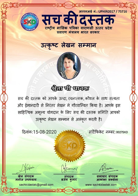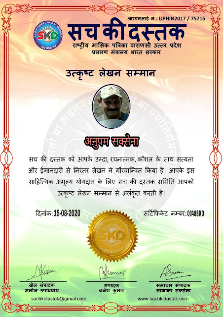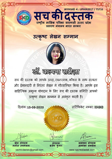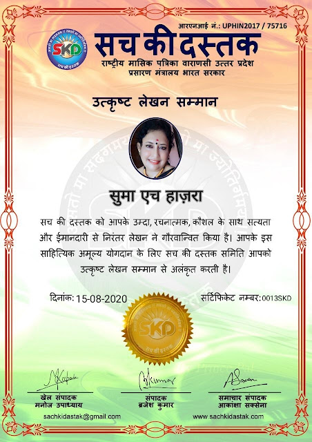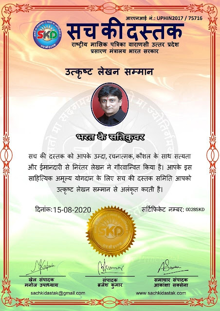 स्वतंत्रता दिवस पर सच की दस्तक द्वारा 45 लेखकों को सम्मानित किया