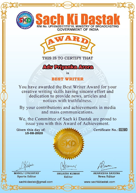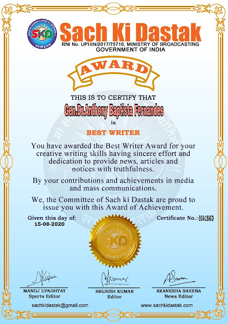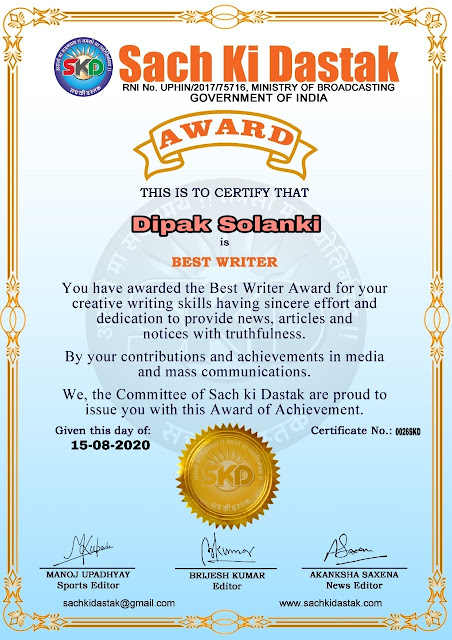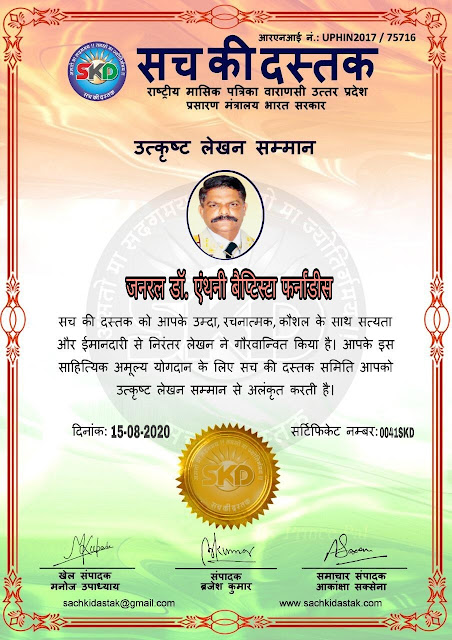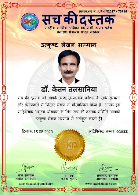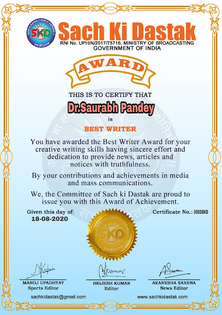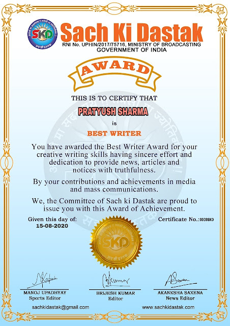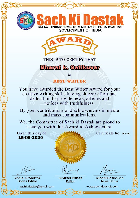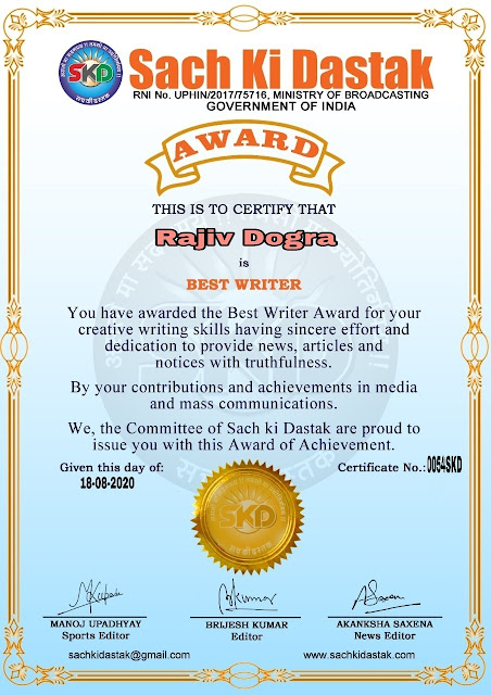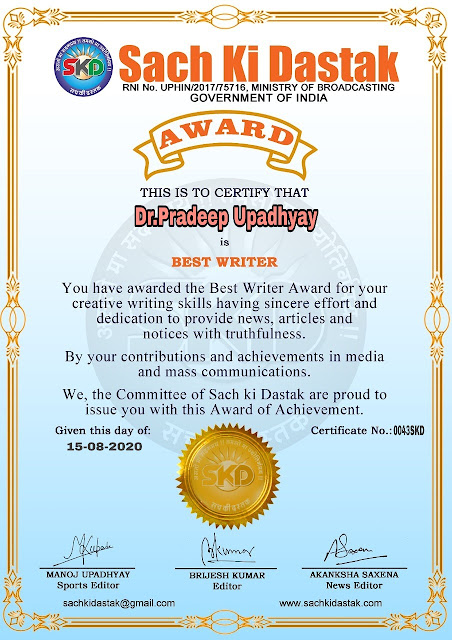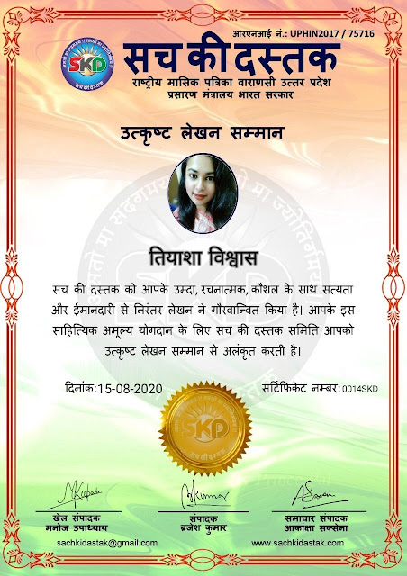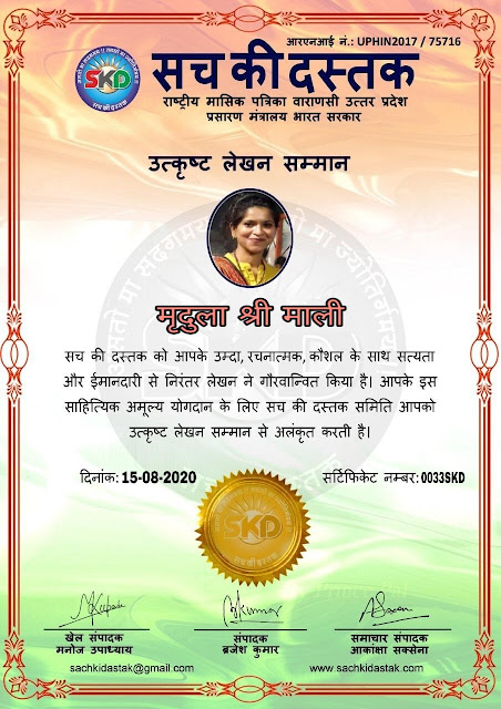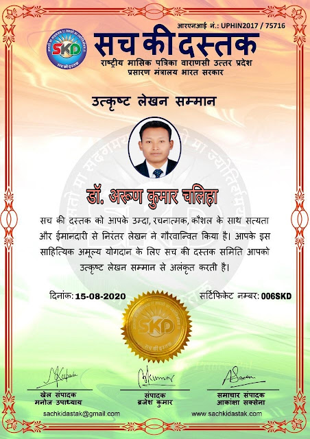 स्वतंत्रता दिवस पर सच की दस्तक द्वारा 45 लेखकों को सम्मानित किया