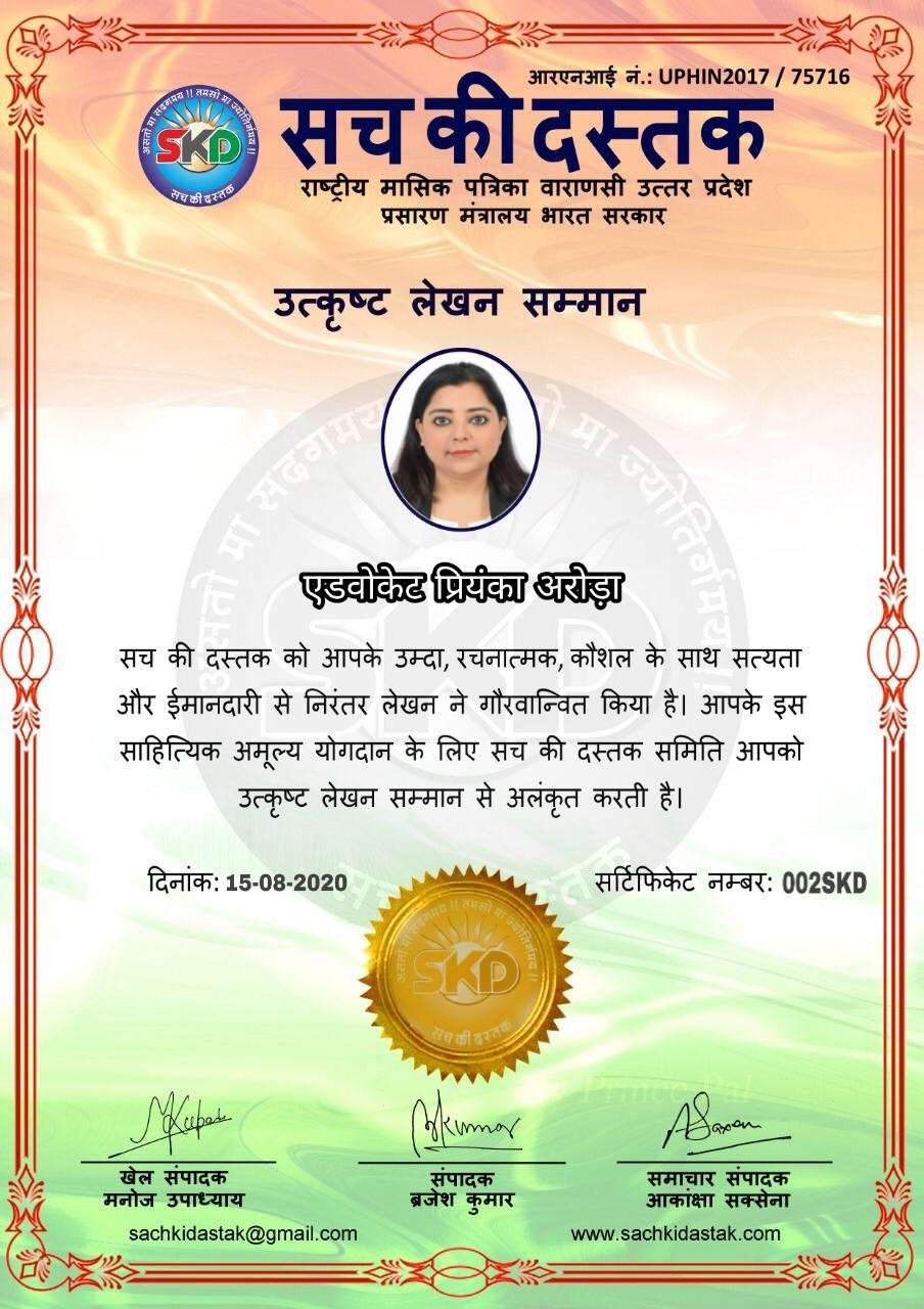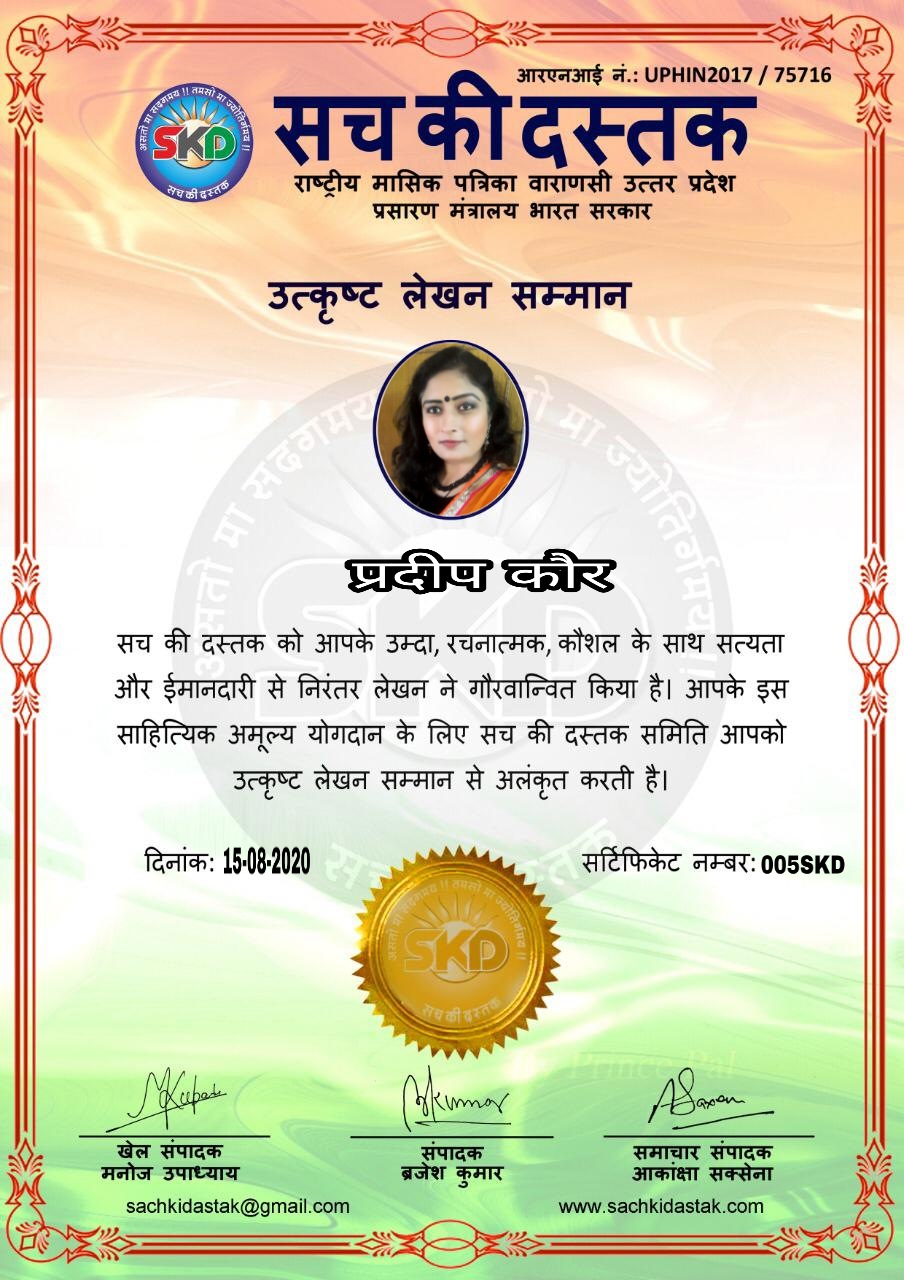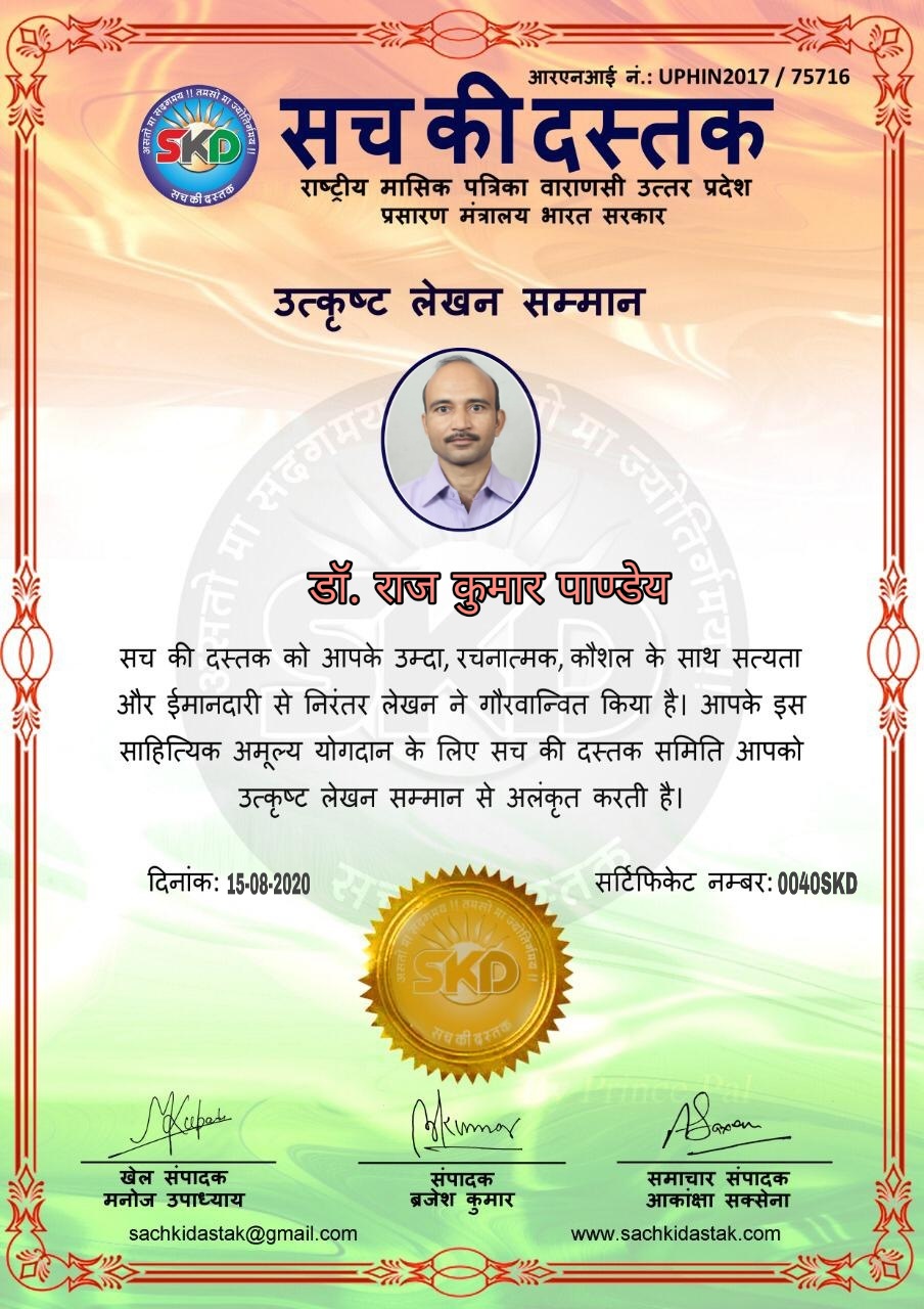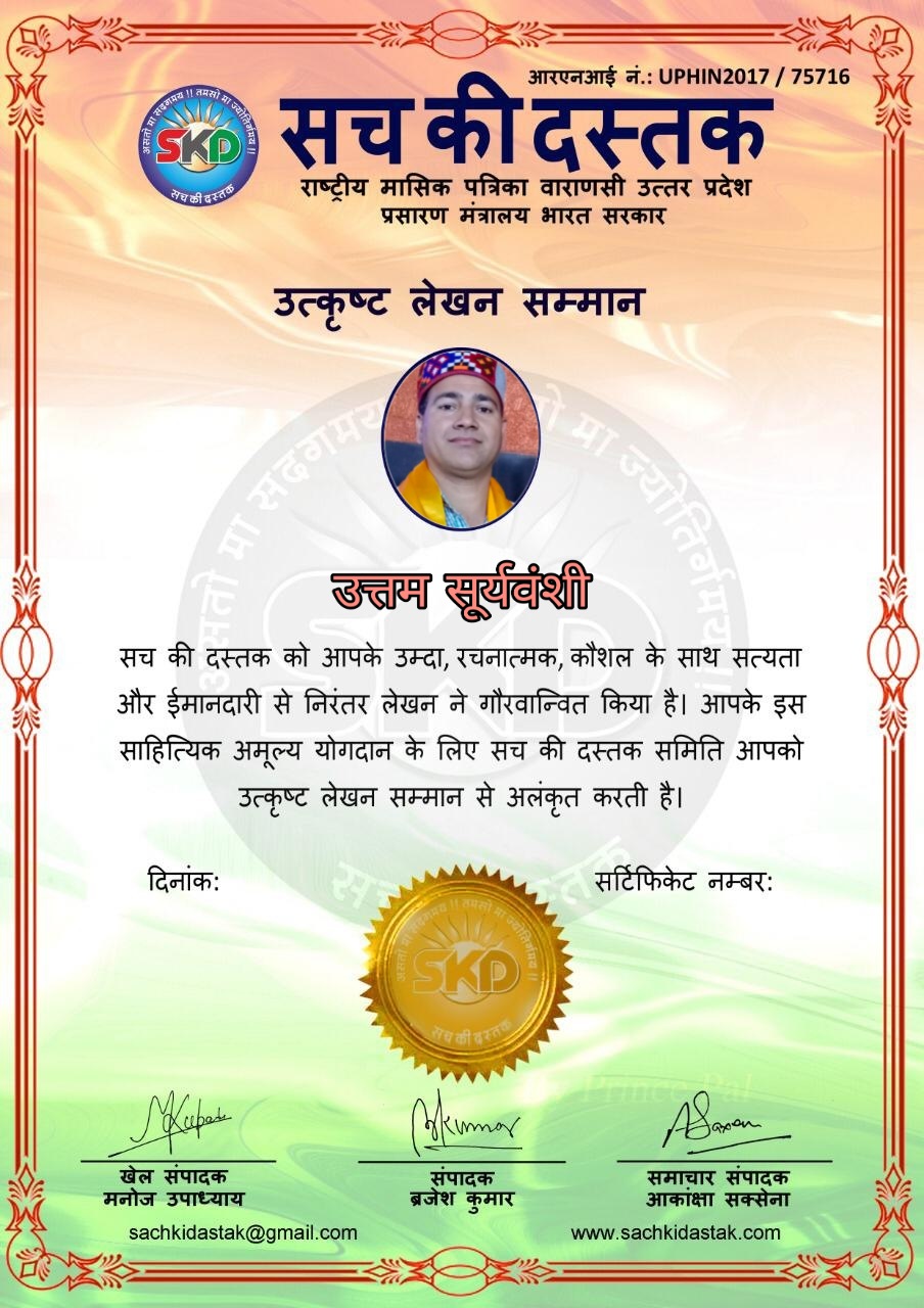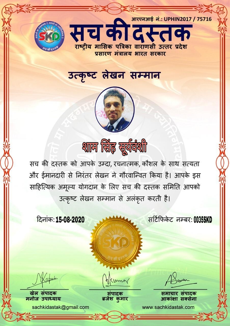 स्वतंत्रता दिवस पर सच की दस्तक द्वारा 45 लेखकों को सम्मानित किया