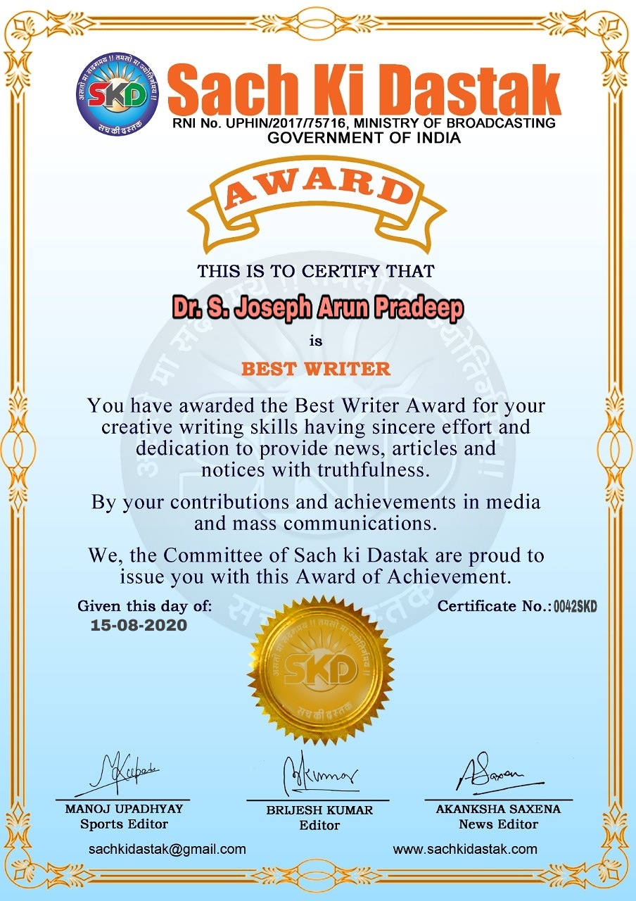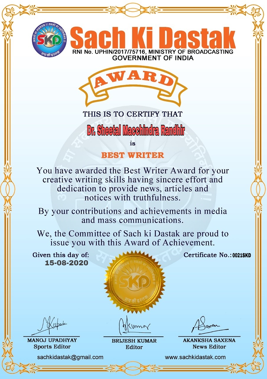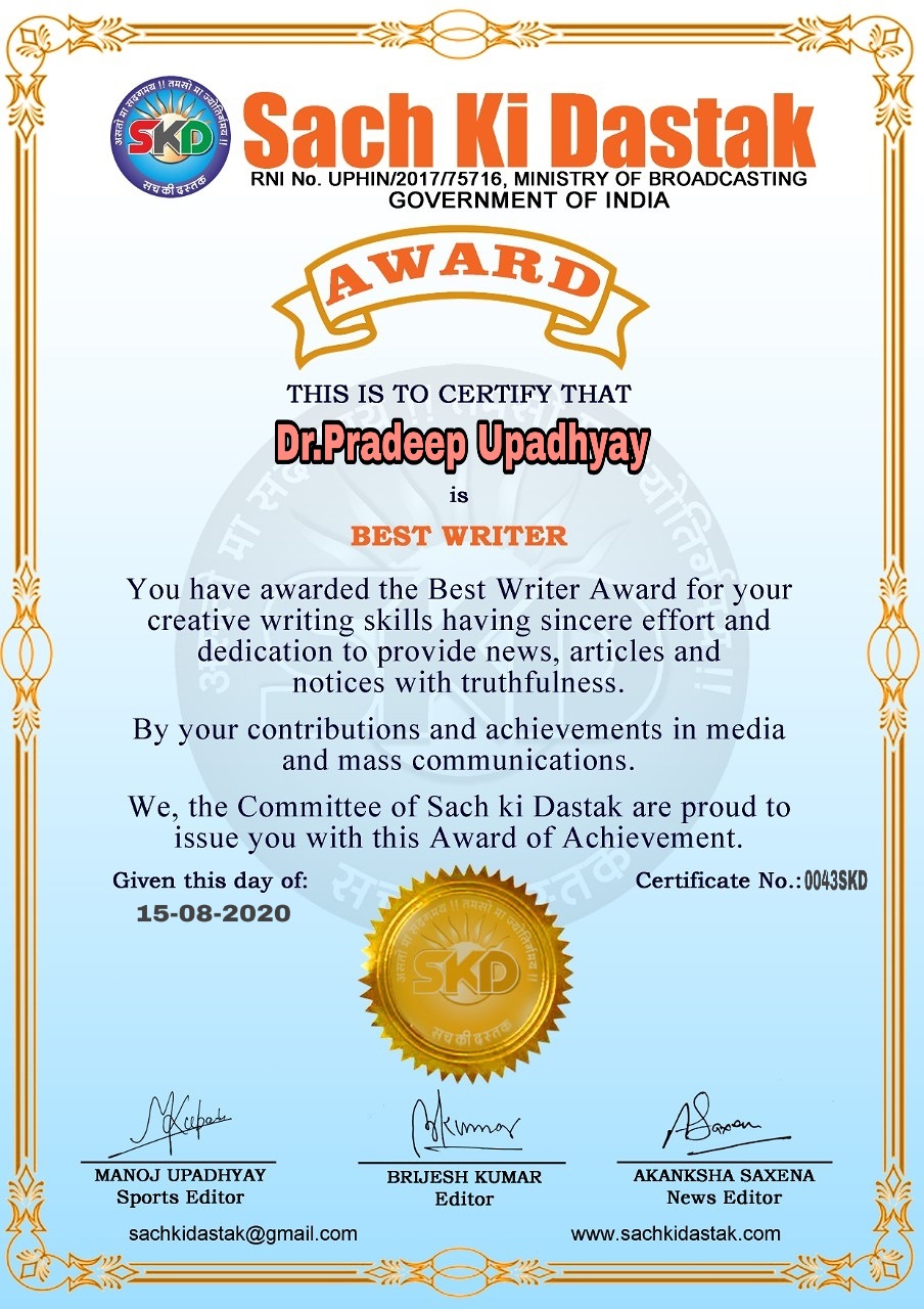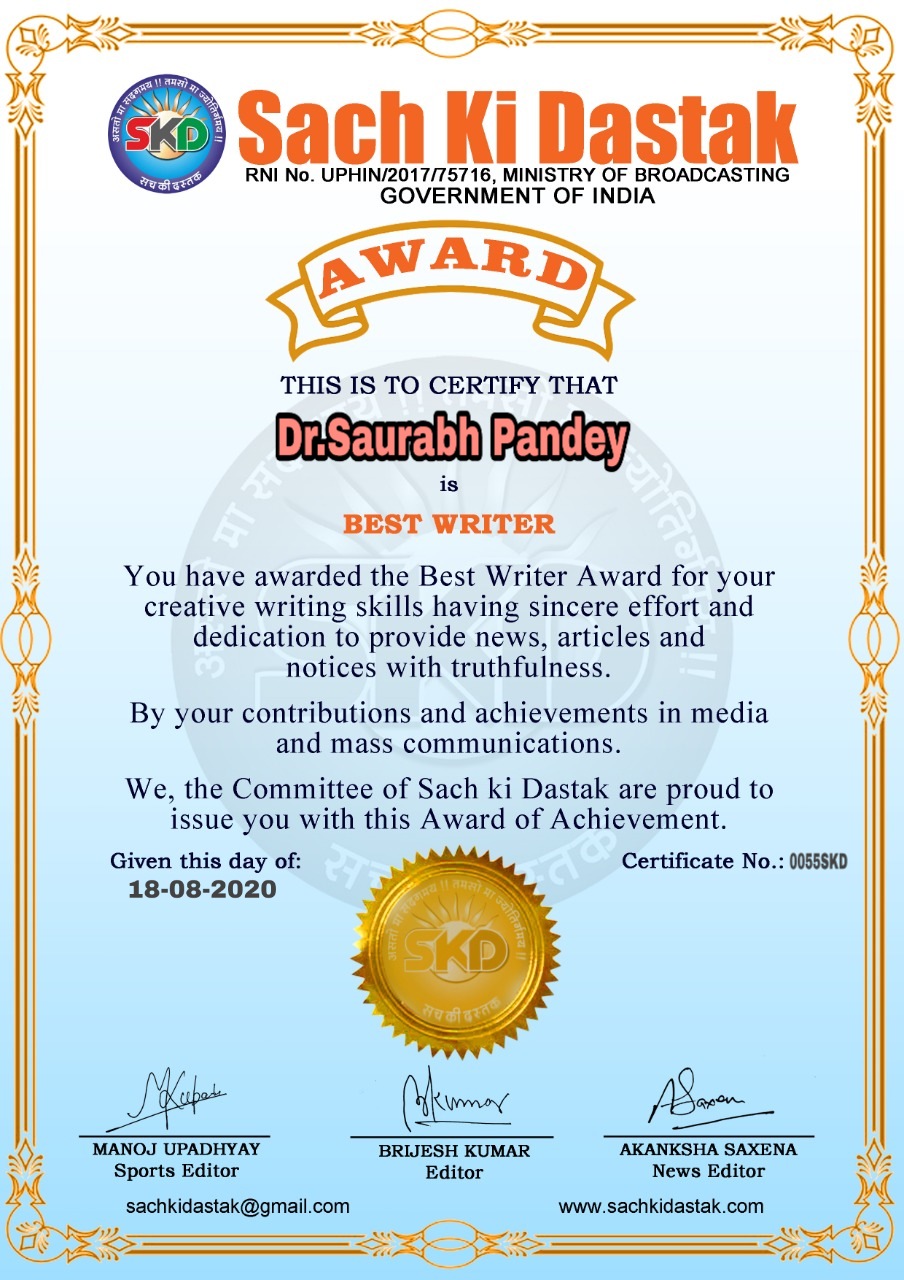 स्वतंत्रता दिवस पर सच की दस्तक द्वारा 45 लेखकों को सम्मानित किया