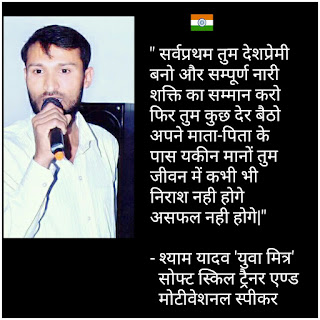 श्याम – मैं सातवीं कक्षा से ही कुशल वक्ता रहा हूँ | जब भी किसी कार्यक्रम में जाता उसके बाद अलग ही फीडबैक आने लगा और धीरे-धीरे लोगों ने मुझे मोटीवेशनल स्पीकर के तौर पर बुलाना शुरू कर दिया फिर मैंने कभी पीछे मुड़ कर नही