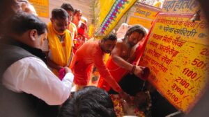 गोवर्धन। योगी आदित्यनाथ के पुनः मुख्यमंत्री बनने पर अयोध्या तपस्वी छावनी के पीठाधीश्वर श्री जगत गुरु परमहंस आचार्य महाराज ने दानघाटी मंदिर पर गिर्राज जी का दुग्धभिषेक कर भारत के हिंदू राष्ट्र घोषित होने के लिए मनोती मांगी।