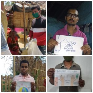 अब जहाँ संगठन नही पहुँच पा रहे है वहाँ संगठन के सदस्य पोस्टर के माध्यम से घर मे रहने, सोशल डिस्टेंसिनग को पालन करने, नियमित हाथ हाथ धोने तथा घर से बाहर निकलने पर मुंह ,नाक को ढक कर निकलने के लिए सोशल मीडिया और फ़ोन से बात करके जागरूक का काम कर रहे है ।