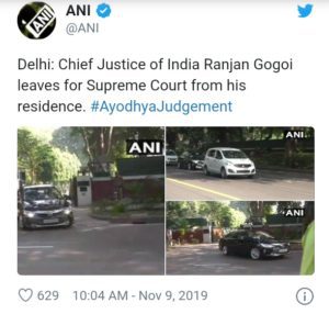 अयोध्या फैसला Live: मुख्य न्यायाधीश रंजन गोगोई SC पहुंचे-
