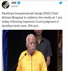 सुप्रीम कोर्ट के फैसले के बाद आरएसएस प्रमुख मोहन भागवत दोपहर एक बजे मीडिया को संबोधित करेंगे।