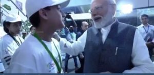 बच्चे को आशीीर्वाद प्यार ऑटोग्राफ देते पीएम