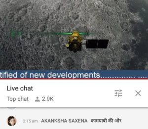 पूरी रात हर भारतीय आँखें गड़ाये इसरो टीम के लाईव टेलीकास्ट को निहारता रहा प्रार्थनाएं करता रहा। करीब ढाई बजे विक्रम रोवर के रूक जाने से.. असमंजस की स्थिति है पर प्रधानमंत्री ने गर्व से कहा हिम्मत रखो।