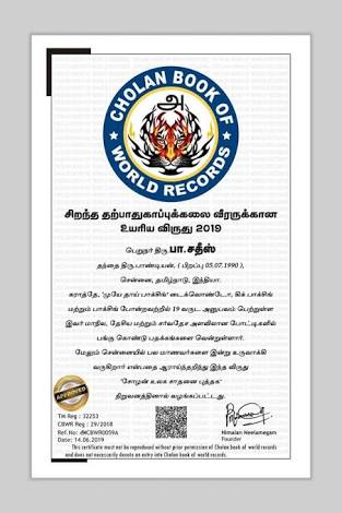 In the mean time, he created 2 new world records in push-ups. as well as, he started a gym and boxing center for the poor village students in the name of “Trust of Cholan book of world Records. This charity has provided free boxing training for more than 50 students. It is noteworthy that recently trained students have received national and state level medals.