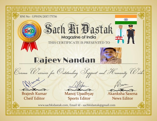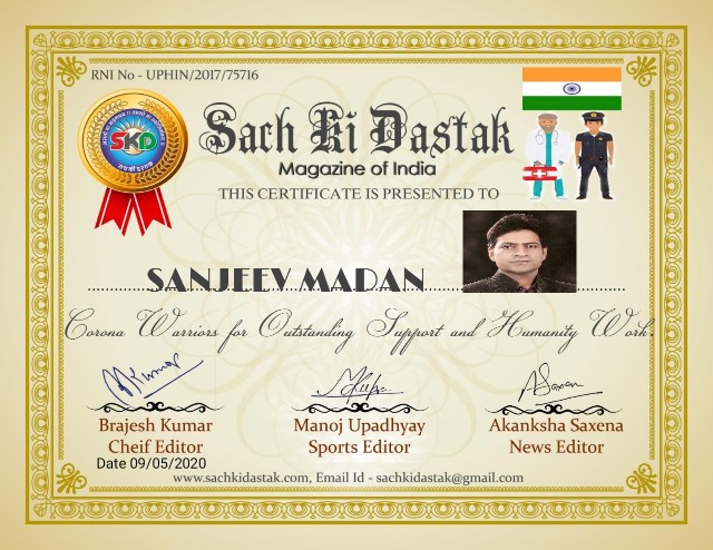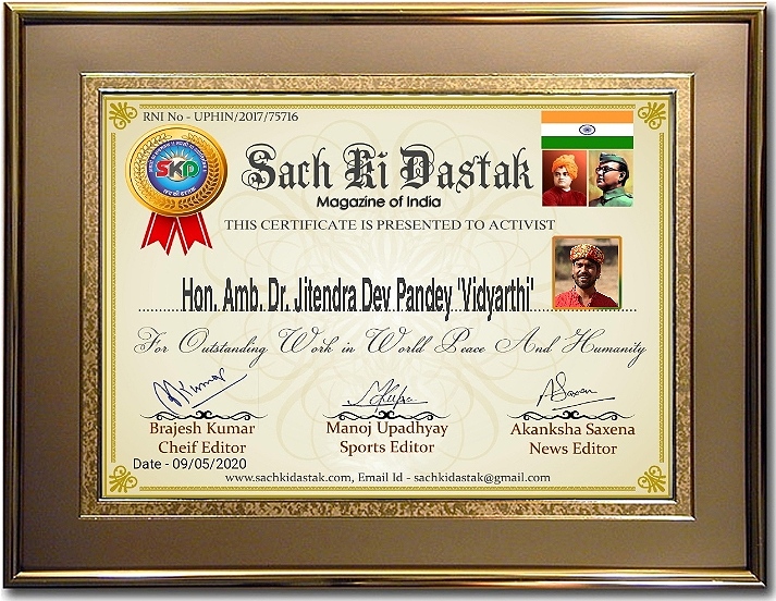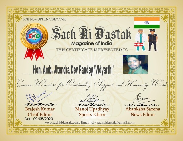 Events - सच की दस्तक हमारा समाज ‘सच की दस्तक’ द्वारा कोरोना योद्धाओं और विश्वशांतिदूतों का सम्मान कर रही है – May 10, 2020 0 सच की दस्तक राष्ट्रीय मासिक पत्रिका कोरोना योद्धाओं और विश्वशांतिदूतों का सम्मान करने में कृतसंकल्पित है। Congratulations 💐🙏💐 Sach ki Dastak sachkidastak See author's posts Continue Reading Previous सच की दस्तक राष्ट्रीय मासिक ने किया कोरोनायोद्धाओं और विश्वशांतिदूतों का सम्मान – 3Next सच की दस्तक ने किया वर्ल्ड रिकार्ड धारकों, कोरोना योद्धाओं और विश्वशांतिदूतों का सम्मान – 0 0 votes Article Rating Subscribe Login Notify of new follow-up comments new replies to my comments Label Name* Email* Website Label Name* Email* Website 0 Comments Oldest Newest Most Voted Inline Feedbacks View all comments