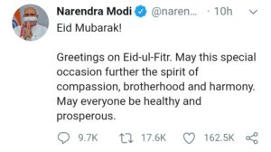 अल्लाह हो या राम मोहब्बत।।आज इस गंगा जमुनी तहजीब वाली पावन धरती पर ईद का त्यौहार है, इस मौके पर समस्त देशवासियों को “ईद मुबारक” ।।।