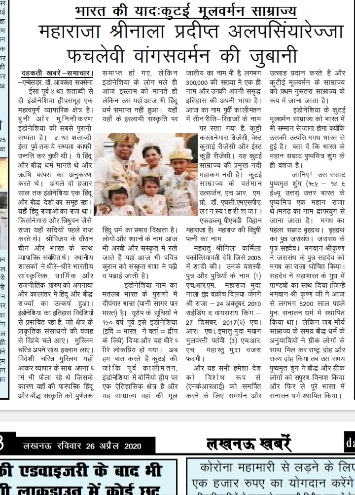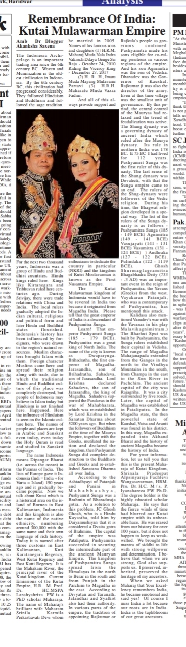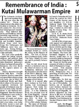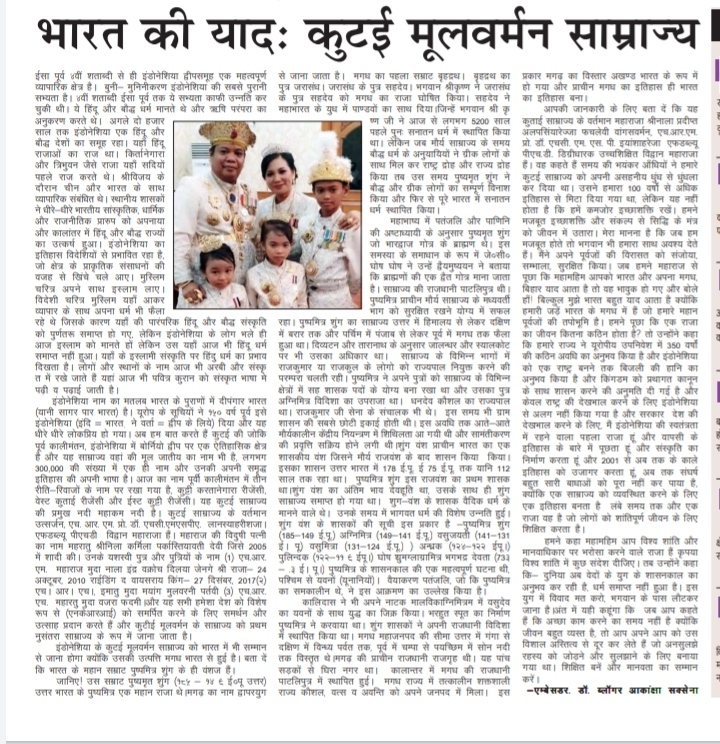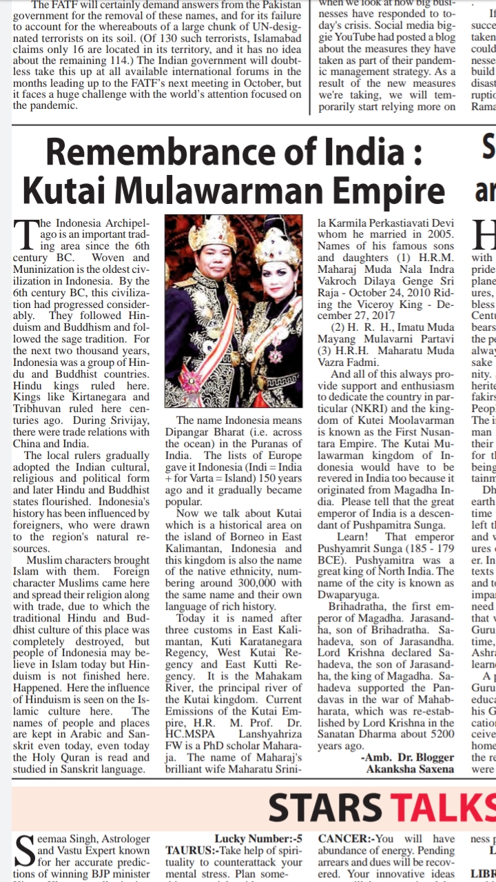 King Kutai Mulawarman Kingdom History in Indian Newspaper – Blogger Akanksha SAXENA