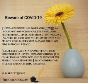OLARIU DEMOSTENE has given a message to beware of COVID-19