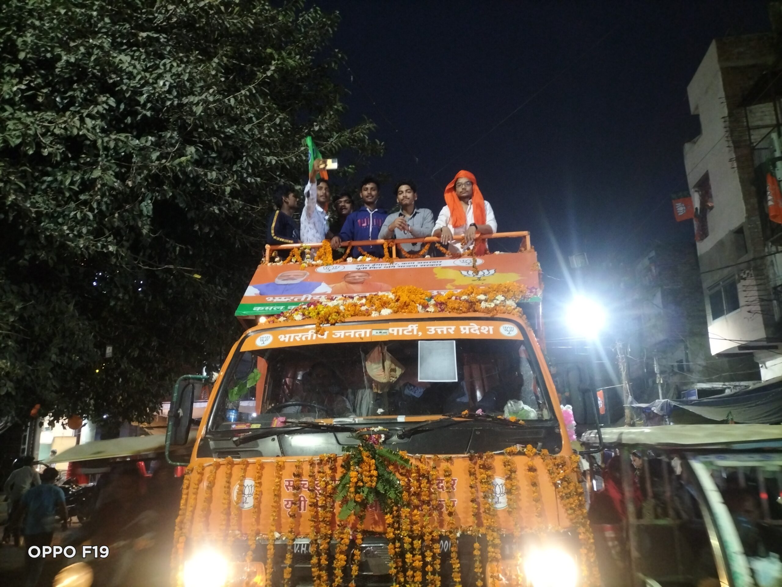 मोदी जिंदाबाद योगी जिंदाबाद फिर एक बार योगी सरकार के नारे लगा रहे थे राजरूपपुर से लेकर लोकनाथ तक दर्जनों योगी के स्वागत के लिए मंच बनाए गए थे योगी की एक झलक पाने के लिए महिलाएं और बच्चे घंटों इंतजार में अपने घरों सड़कों पर खड़ी रही महिलाएं और बच्चे योगी जी पर फूल मालाएं बरसा रही थी नकाश कोना खलीफा मंडी के विशाल मंच पर योगी जी ने अपने विचार रखेl