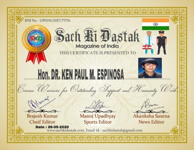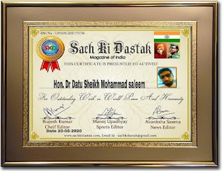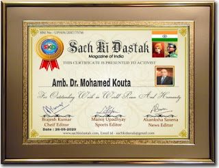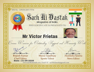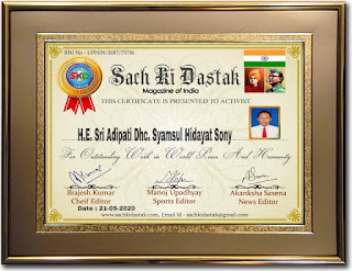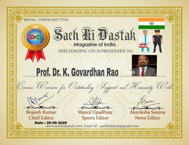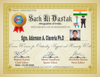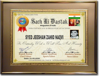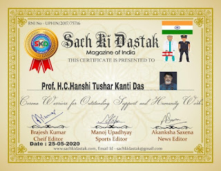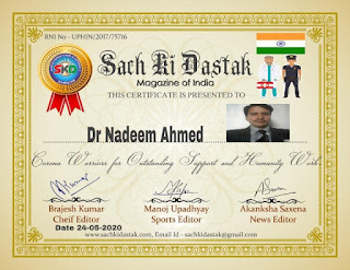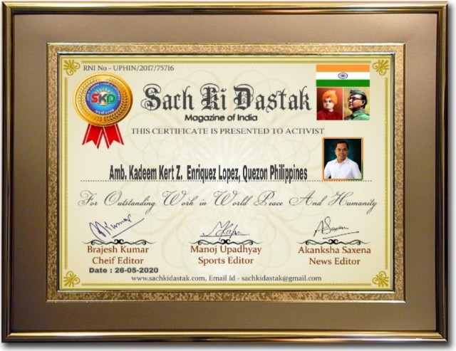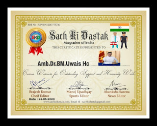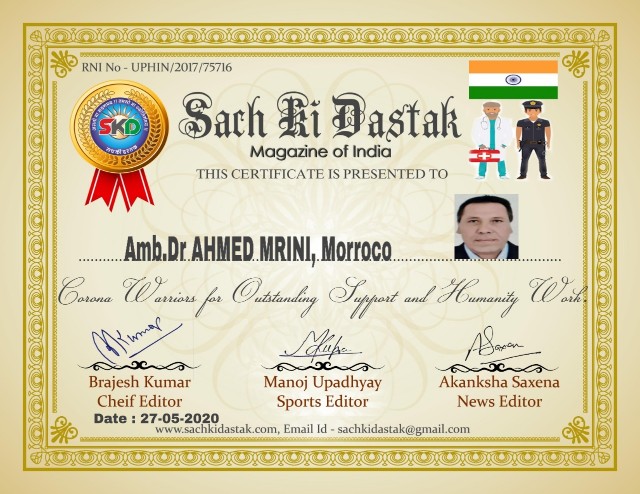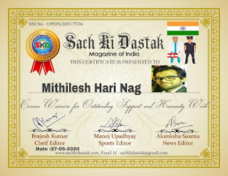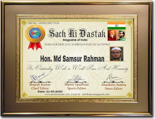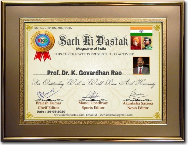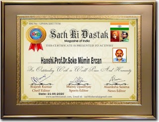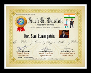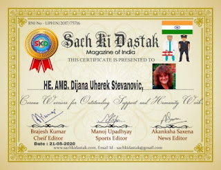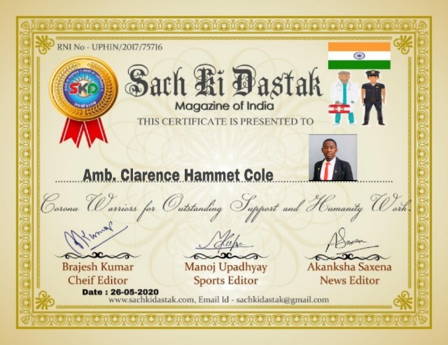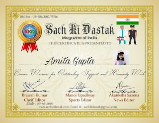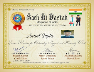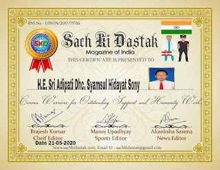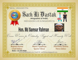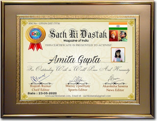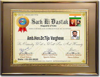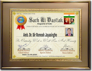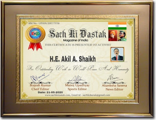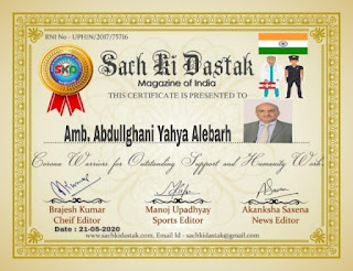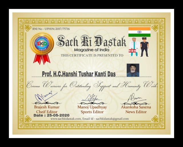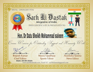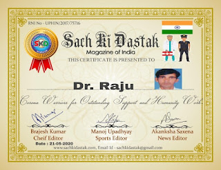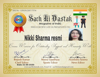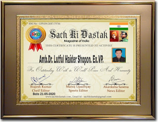इस भयावह कोरोना काल में जो भी जरूरतमंदों की मदद कर रहे हैं और जो विश्व शांति का संदेश दे रहे हैं ऐसे सभी महानुभावों को सच की दस्तक राष्ट्रीय मासिक पत्रिका वाराणसी उत्तर की ओर से निशुल्क रूप से वर्ल्ड पीस एंड ह्यूमैनिटी एक्टिविस्ट कोरोना योद्धा सम्मान द्वारा सम्मानित किया जा रहा है।