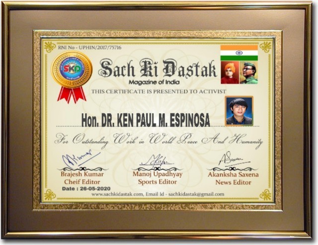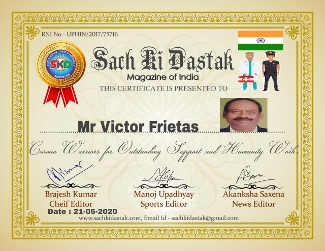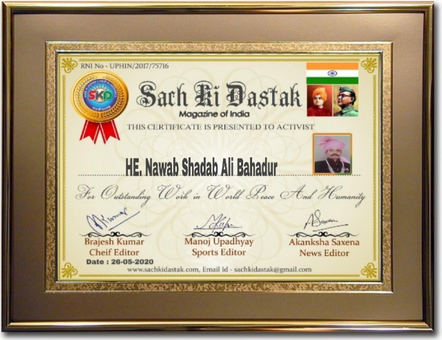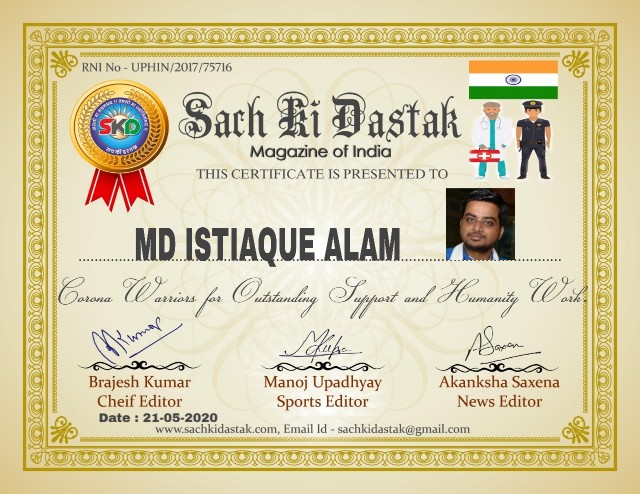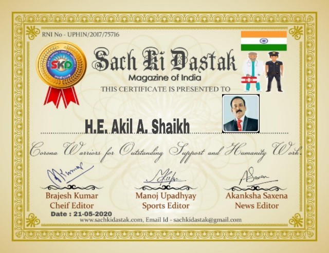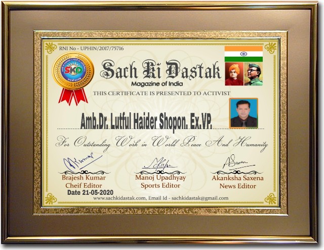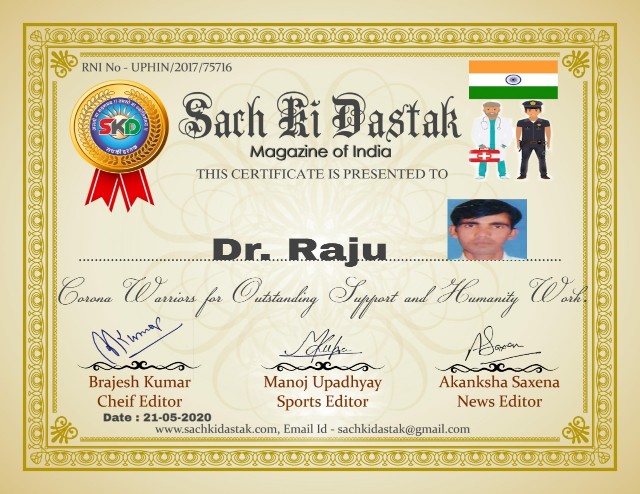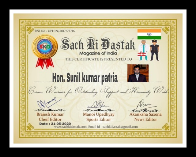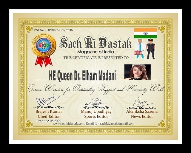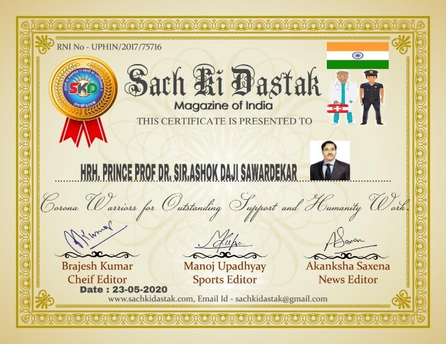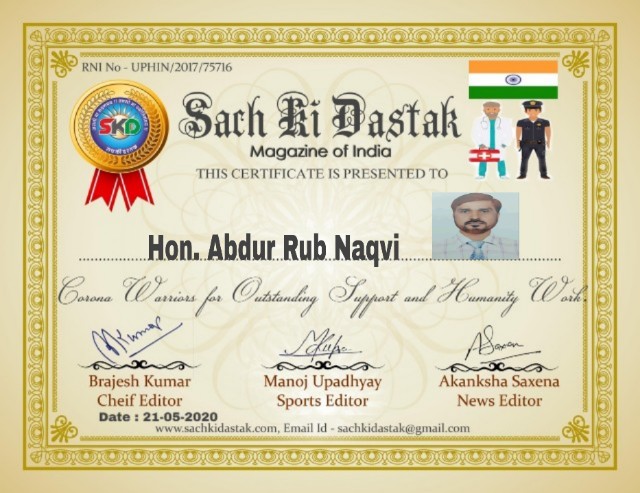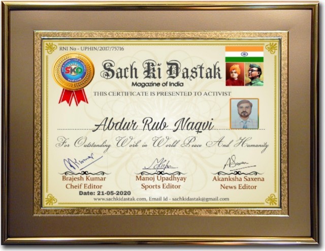 इस भयावह कोरोना काल में जो भी जरूरतमंदों की मदद कर रहे हैं और जो विश्व शांति का संदेश दे रहे हैं ऐसे सभी महानुभावों को सच की दस्तक राष्ट्रीय मासिक पत्रिका वाराणसी उत्तर की ओर से निशुल्क रूप से वर्ल्ड पीस एंड ह्यूमैनिटी एक्टिविस्ट कोरोना योद्धा सम्मान द्वारा सम्मानित किया जा रहा है।