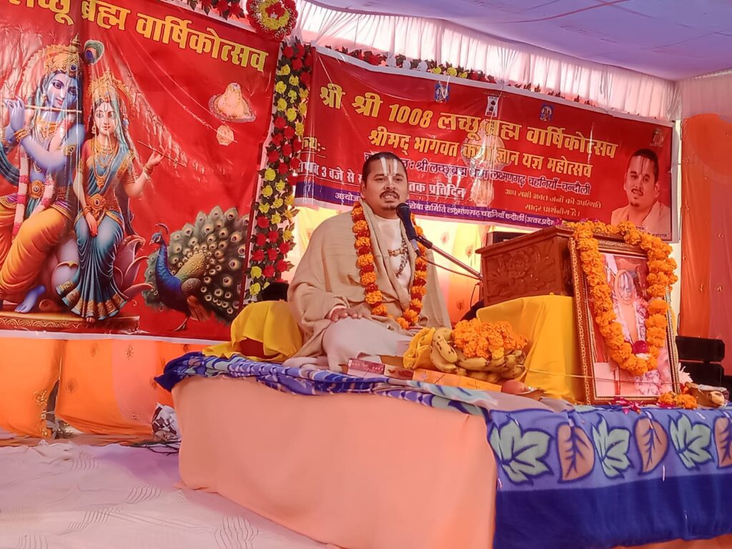 चहनिया क्षेत्र के लक्ष्मनगढ़ गांव स्थित लच्छू ब्रम्ह बाबा के प्रांगण में चल रहे सात द्विवसीय श्रीमद् भागवत कथा के पांचवे दिन रविवार को गया पीठाधिश्वर श्री वेकेटेश प्रपन्नाचार्य जी महराज ने श्री हरी के अन्य रूपां का वर्णन करते हुए बताया समाज कल्याण की उद्देश्य के लिए नारायण श्री हरी अनेक रूपों में जन्म लिया। स्वामी जी ने अति संक्षेप में भगवान विष्णु के विभिन्न 24अवतारों और उनके उद्देश्य का वर्णन की कथा बारी-बारी से श्रद्धालुओ को श्रवण करवाया। भक्त ध्रुव की कठोर तपस्या, भगवान से उनकी भेंट और उन्हें प्राप्त हुए दिव्य पद की कथा सुनाई जाती है, जो भक्ति की शक्ति और दृढ़ संकल्प को दर्शाती है। महात्मा विदुर के ज्ञान, वैराग्य और उनकी भक्तिपूर्ण जीवन शैली का वर्णन किया जाता है। देवहूति संवाद और कपिल मुनि का जन्मः सृष्टि के निर्माण और कपिल मुनि द्वारा अपनी माता देवहूति को दिए गए आध्यात्मिक ज्ञान (सांख्य दर्शन) का प्रसंग को बताया। शिव-सती से संबंधित कथाएं भी सुनाई जो वैराग्य और भक्ति के महत्व पर प्रकाश डाला। इन कथाओं के माध्यम से भक्तों को भक्ति, ज्ञान, वैराग्य और सांसारिक मोह से मुक्ति पाने की शिक्षा दी। ताकि जीव अपने सांसारिक बन्धनां से छुटकारा पा सके और अंत में नारायण का कृपा पात्र बन सके। वही स्वामी जी ने आज के समाज पर करारा प्रहार करते हुए कहा कि वर्तमान दौर में नैतिकता पूरी तरह से बिलुप्त हो रही है। भाई, भाई के जान का दुश्मन, मामा-पिता, बेटा-बटी, मित्र यह सब नैतिकता विहीन होते जा रहे है जो उनके दुःख का सबसे बड़ा कारण बन बैठा है। कम से कम भरत जैसा भाई सुदामा व श्रीकृष्ण जैसा दोस्त, कौशिल्या जैसी माता, सीता जैसी पत्नी, दशरथ जैसा पिता बनने का प्रयास करे तभी जीव का कल्याण सम्भव हो पायेगा। स्वामी जी लोगो से अपील किया आप कथा मत सुनो अगर सुनते हो तो उसका मनन करो ताकि तुम्हारे अन्दर के सारे, रोग, दोष, पाप, द्ववेष, ईष्या का नाश हो सके और तुम एक अच्छा इंसान बनकर अपना जीवन यापन कर सको अगर तुम्हारे विचार मलीन होगे तो समस्त असुरी शक्तियां तुम्हारे अन्दर विद्यमान हो जायेगी और तुम्हारा जीवन कष्ट मय हो जायेगा इसलिए हे! कथा श्रोताओ तुम नारायण का ध्यान करके अपने अन्दर के समस्त विकारों को बड़े आसानी से दूर कर सकते हो तुम्हारा कल्याण हो। इस दारौन राजेन्द्र मिश्र, अभिमन्यु मिश्रा, उमेश मिश्र, राजू ओझा, धन्नजय सिंह, गणेश सिह, गउ प्रधान, मेलू गुप्ता, राजन बरनवाल, चमन पाण्डेय, गणेश सिंह, दिवाकर पाण्डेय, कृष्णा पाण्डेय, विन्ध्याचल तिवारी, रोहित गुप्ता, मुख्य यजमान धु्रव मिश्र उर्फ प्रिन्स सहित सैकड़ो नर नारियां ने कथा का श्रवण करते हुए आरती कर प्रसाद ग्रहण किया। कथा का संचालन राजेन्द्र पाण्डेय ने किया।