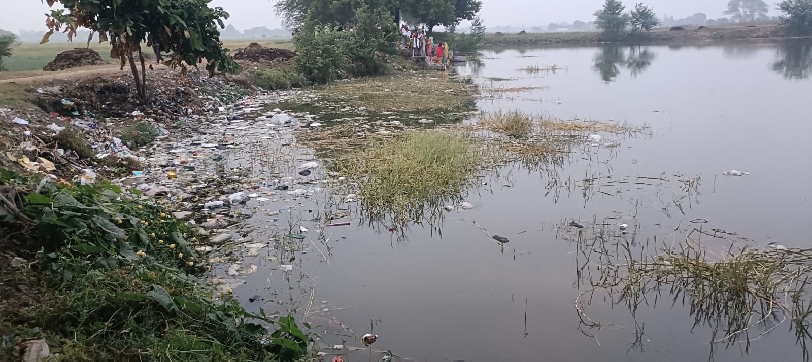 वही मनकपड़ा गांव का तालाब भी पूरी तरह गंदगी से पटा पड़ा है। यहां महिलाएं उसी गंदे पानी में डुबकी लगाकर सूर्य को अर्घ्य देगी,