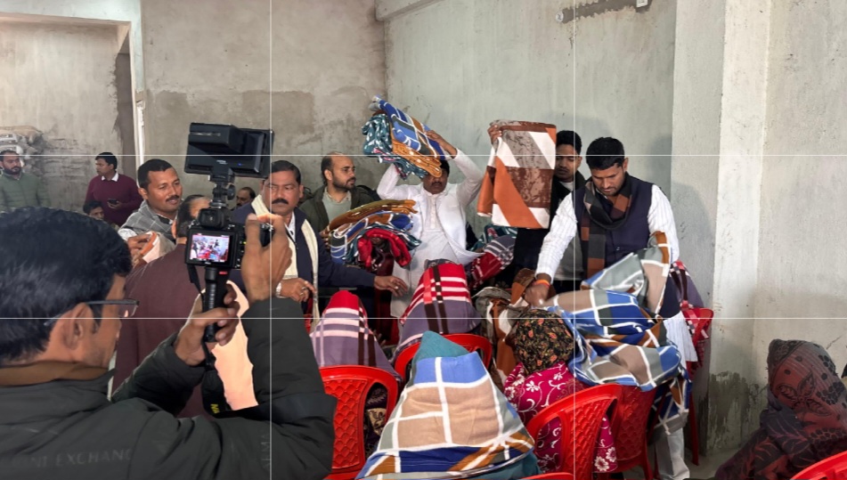 सपा नेता संतोष यादव ने गरीबों में बांटा कम्बल