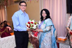श्री चटर्जी और उनकी धर्मपत्नी श्रीमती शर्मिला चटर्जी ने आर्टिकल राइटिंग प्रतियोगिता के विजेताओं को पुरस्कृत किया।