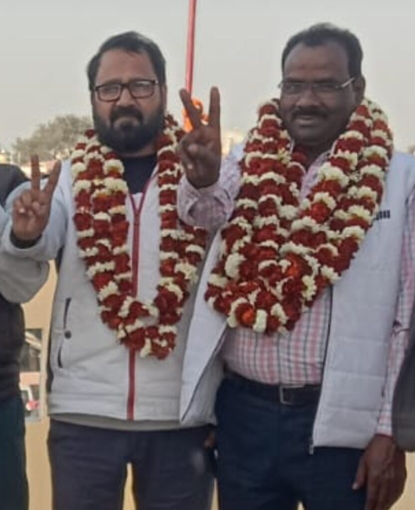 चंदौली। श्रमजीवी पत्रकार यूनियन का वार्षिक चुनाव 2023 रविवार को शंकर मोड़ स्थित एक निजी विद्यालय में संपन्न हुई जिसमें पूर्वी अध्यक्ष करुणापति तिवारी के देखरेख में राकेश शर्मा को पुनः जिलाध्यक्ष व निज़ाम बाबू को जिला महामंत्री पद पर चयनित किया गया। जिसपर मौजूद पत्रकारो ने माला पहनाकर खुशी का इजहार किया। इस मौके पर राकेश शर्मा ने कहा कि हम पत्रकार साथियों के साथ कंधा से कंधा मिलाकर चलने का काम करेंगे और उनके सुख दुःख में हमारी हमेशा से सहभागिता रहेगी। महामंत्री निज़ाम बाबू ने कहा कि पत्रकारिता के क्षेत्र में किसी भी पत्रकार का शोषण नही होने देंगे वही पत्रकारो के सुरक्षा की जिम्मेदारी हमारे संगठन की है।