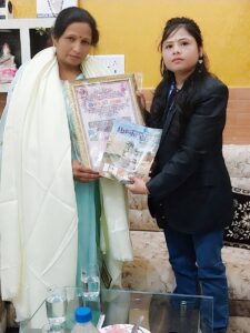सच की दस्तक राष्ट्रीय मासिक पत्रिका वाराणसी की प्रतिवर्ष की परम्परागत विश्व महिला दिवस की सप्ताहिक संध्या सम्मान मुहिम के परिप्रेक्ष्य में आज 5 मार्च 2022 को सच की दस्तक की न्यूज एडीटर आकांक्षा सक्सेना और जिला औरैया के ब्यूरोचीफ अक्षांशु कुमार ने उत्तर प्रदेश की प्रसिद्ध संस्था विचित्र पहल के जिला कार्यालय में स्वंय पहुंच कर ससम्मान, विचित्र पहल के संस्थापक आदरणीय डॉ आनंद नाथ गुप्ता जी, एडवोकेट और विचित्र पहल की तुलसी महिला शाखा की सम्मानित अध्यक्षा आदरणीय लक्ष्मी गुप्ता जी के महान उत्कृष्ट कार्यों हेतु विधिवत् सॉल उढ़ाकर अद्वितीय महिला सम्मान – 2022 से सम्मानित किया।