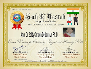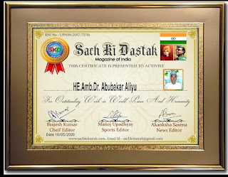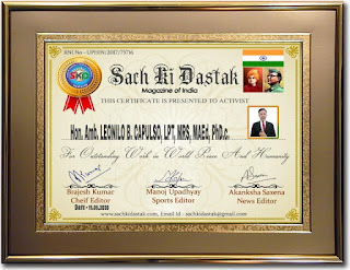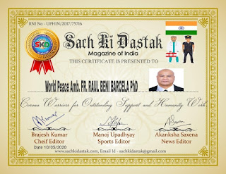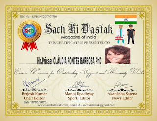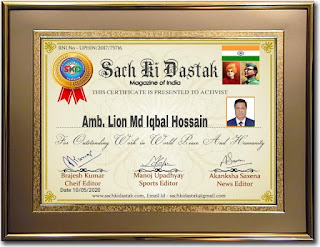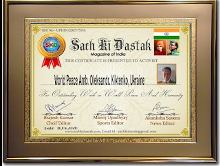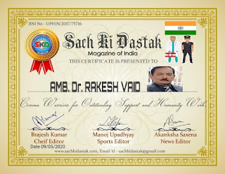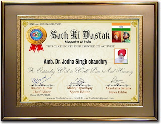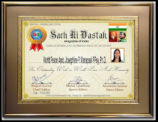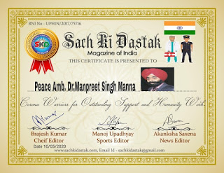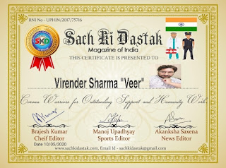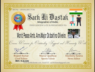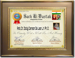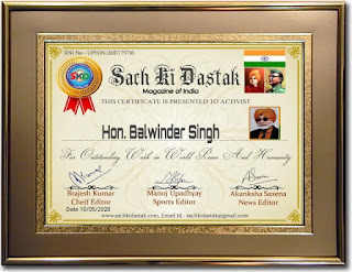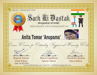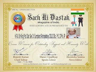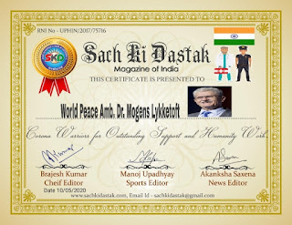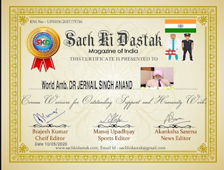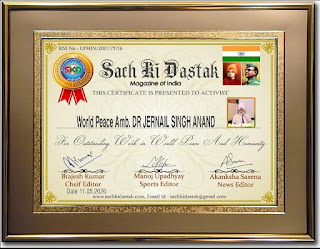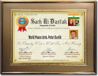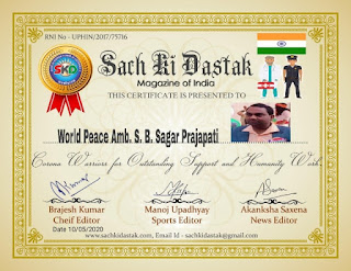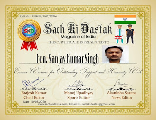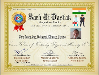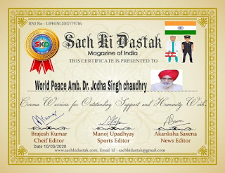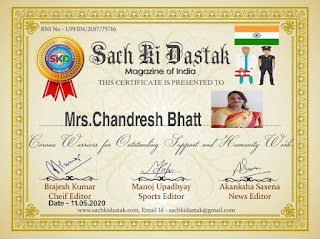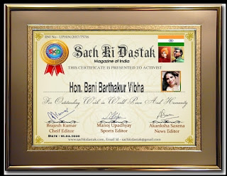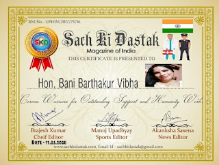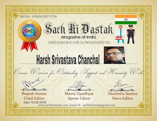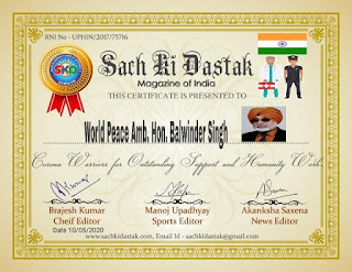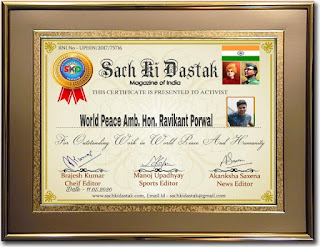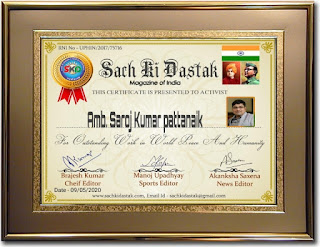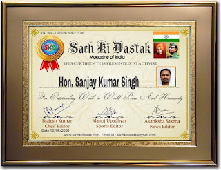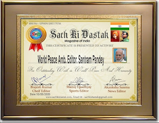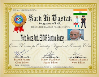 स्लोवाकिया देश तक पहुंच रही हमारी आपकी ‘सच की दस्तक’ राष्ट्रीय पत्रिका, वाराणसी की पहल- हमारी पत्रिका विश्व के सभी कोरोना योद्धाओं और विश्वशांतिदूतों और वर्ल्ड रिकार्ड धारकों का सम्मान करने में कृतसंकल्पित है। मैं आकांक्षा सक्सेना, सच की दस्तक की न्यूज एडीटर होने के नाते यह बात बिल्कुल साफ कर देना चाहती हूँ कि हम सभी महान विभूतियों का ‘सम्मान’ कर रहे हैं न कि’ सामान’ दे रहे हैं। मतलब हम किसी से कोई भी राशि नहीं ले रहे हैं। क्योंकि जो पैसे से लिया जाये या दिया जाये वह ‘सम्मान’ नहीं ‘सामान’ मात्र होता है।