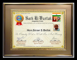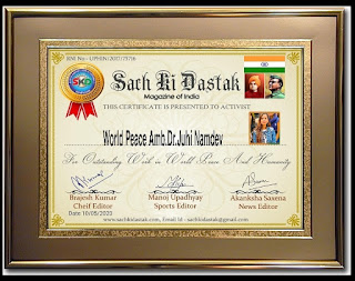 सच की दस्तक ने किया वर्ल्ड रिकार्ड धारकों, कोरोना योद्धाओं और विश्वशांतिदूतों का सम्मान –