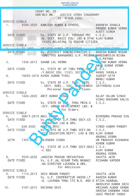 मैं बंटी पाण्डेय आप सभी लोगो को अवगत कराना चाहता हूँ 10 विवादित प्रश्नों को लेकर केस नंबर 3594/2020 कोर्ट नंबर 20 मेंं 1 नंबर पर Additional cause list में जस्टिस विवेक चौधरी जी की बेंच पर आज सुनवाई होगी। आपको अवगत करा दूँ कि अधिवक्ता अवधेश शुक्ला जी और प्रमोद पटेल जी ने 9 प्रश्न अति विवादित सिद्ध करा दिए हैं।जिसका हमारे पास साक्ष्य है।